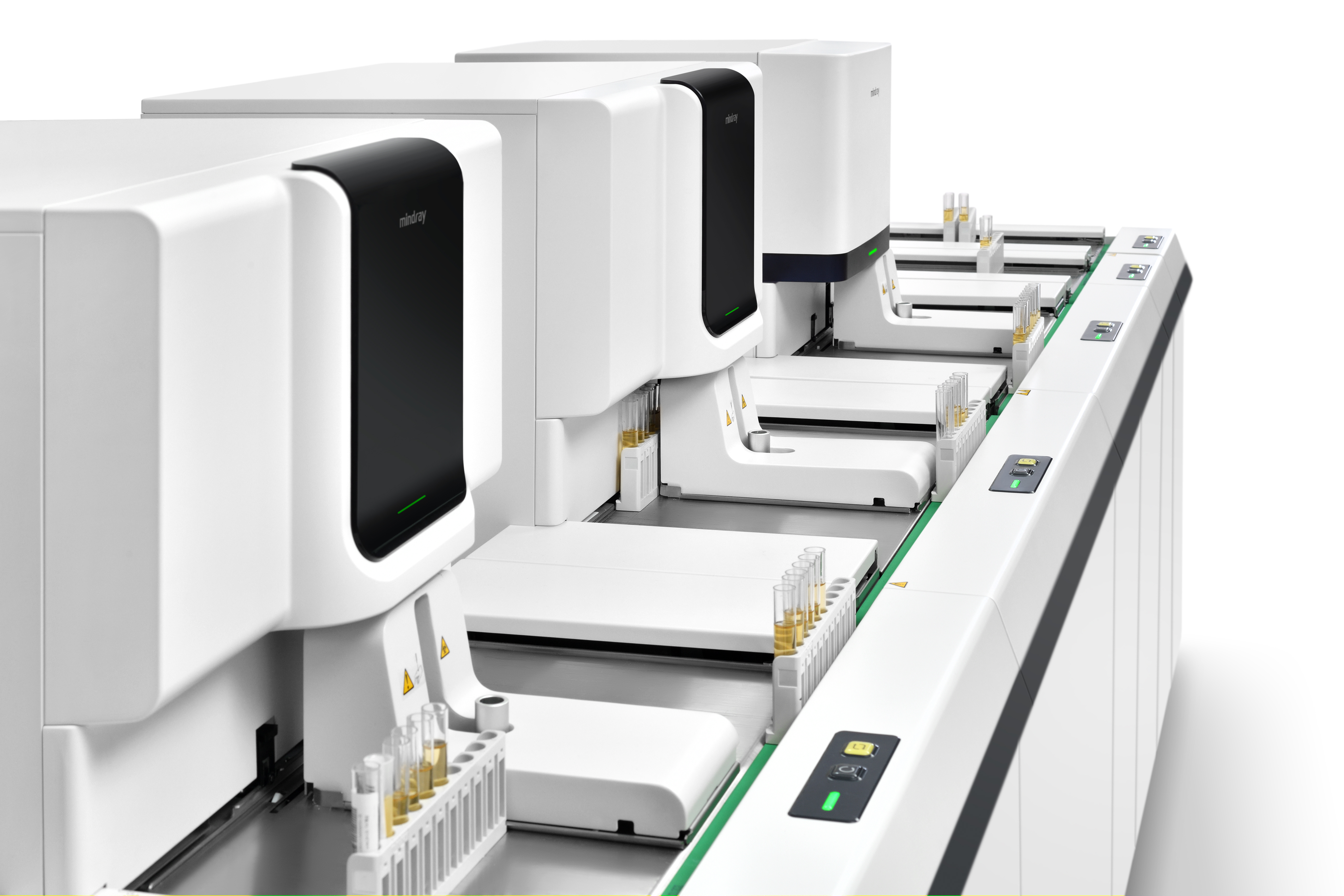 Мощная станция анализа мочи EU-8600 от производителя Mindray состоит из анализатора сухой химии UA-5600 производительностью до 240 проб в час и анализатора осадка мочи EH-2090, производительностью до 120 образцов в час, соединенных автоматической линией подачи штативов. Данная модель анализатора имеет две модификации: