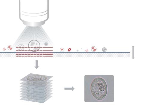 Четкое изображение форменных элементов за счет слияния нескольких объектов